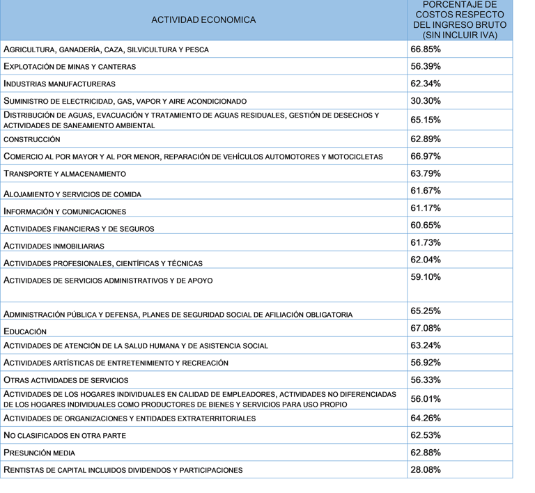 Es un mecanismo que permite a los contribuyentes al sistema de seguridad social integral, depurar su base de cotización (IBC), deduciendo de sus ingresos totales un porcentaje fijo de costos, de acuerdo con su actividad económica, y aplica para todos los trabajadores independientes por cuenta propia y quienes celebren contratos diferentes de prestación de servicios personales, que no están obligados a llevar contabilidad, de esta manera se simplificará el proceso para determinar los Ingresos base para el cálculo de los Aportes de Seguridad Social.
